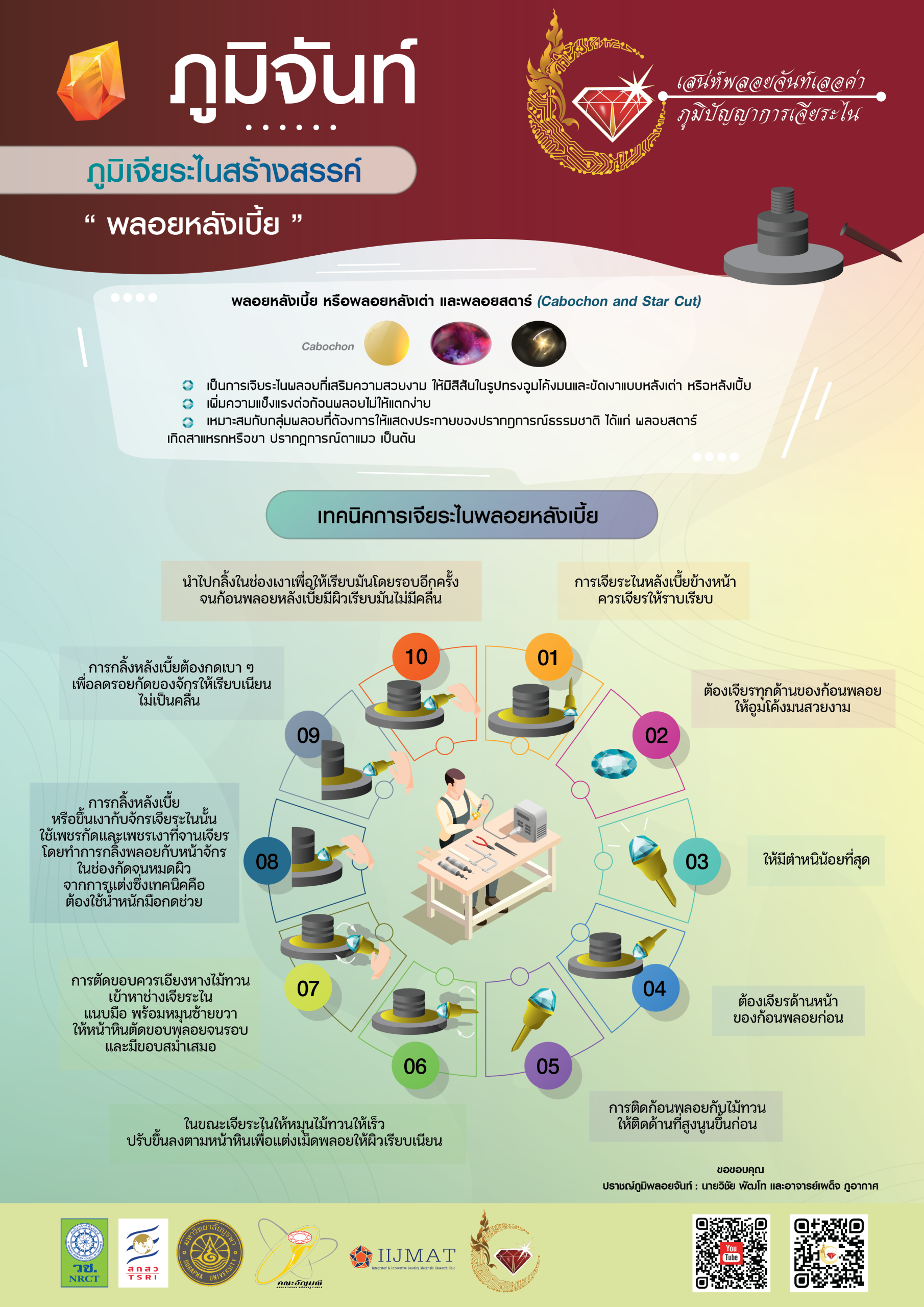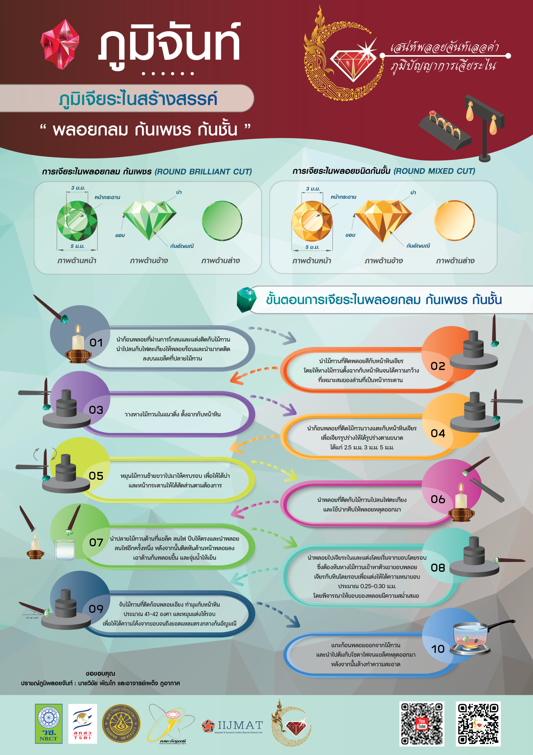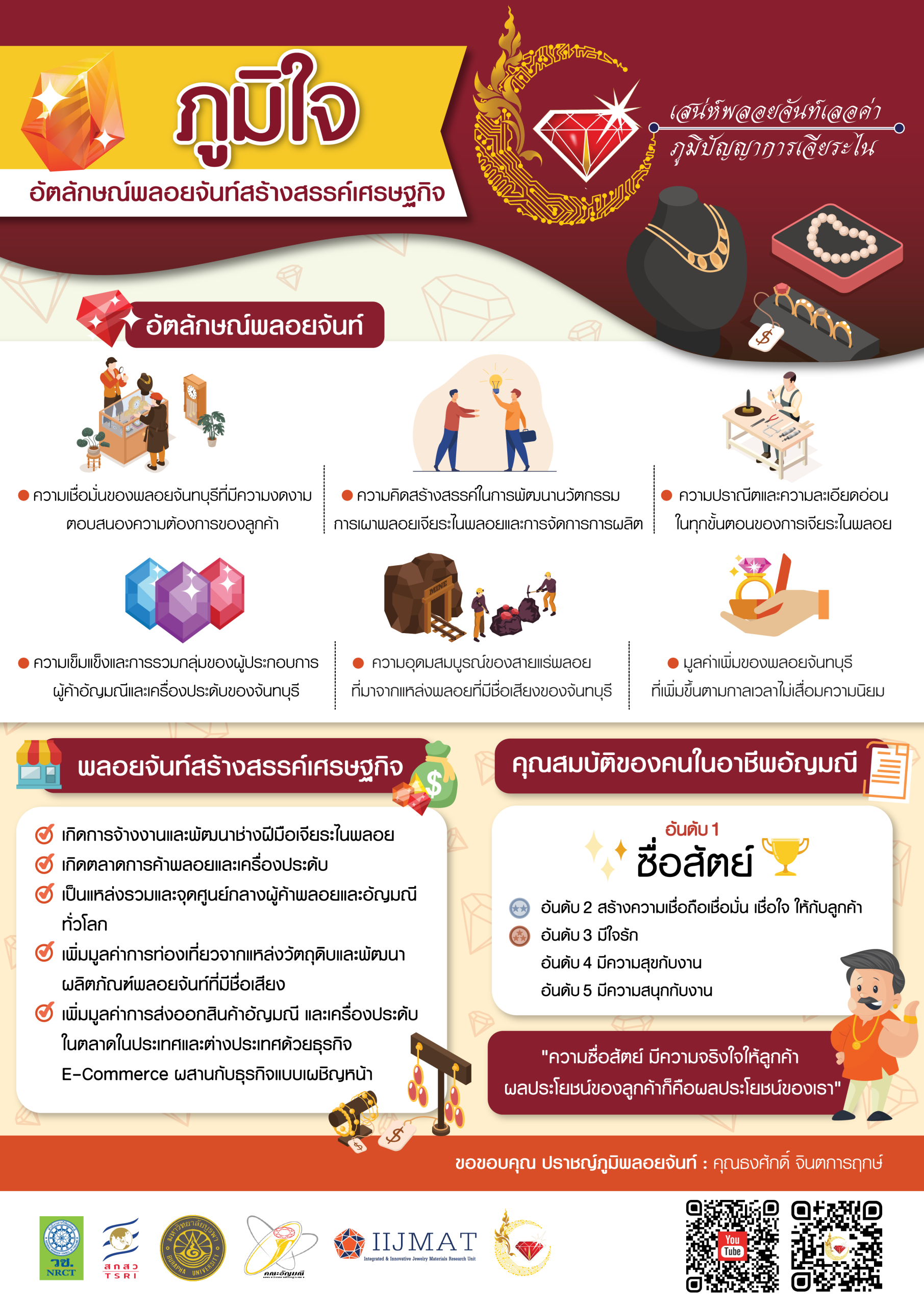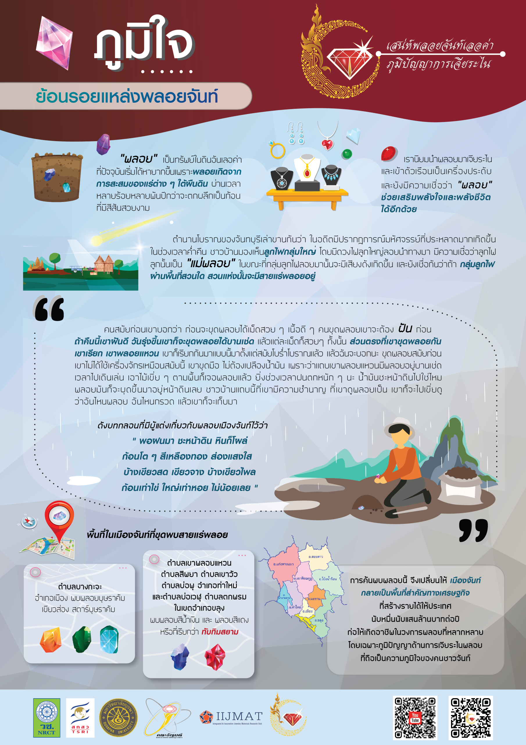 ภูมิจันท์ 11 videos found สรรหาวัตถุดิบและคัดเลือกก้อนพลอย 7 months ago• 0views ภูมิจันท์ 03:48 ย้อนรอยแหล่งพลอยจันท์ 7 months ago• 6views ภูมิจันท์ 05:03 ภูมิเจียระไนสร้างสรรค์ “การโกลนพลอย แต่งพลอย” 7 months ago• 2views ภูมิจันท์ 03:43 ภูมิเจียระไนสร้างสรรค์ “พลอยกลม ก้นเพชร ก้นชั้น” 7 months ago• 1views ภูมิจันท์ เตรียมความพร้อมการเจียระไนพลอย 7 months ago• 0views ภูมิจันท์ ภูมิเจียระไนสร้างสรรค์ “พลอยสี่เหลี่ยม” 7 months ago• 0views ภูมิจันท์ 12»Page 1 of 2 ภูมิใจ 4 videos found อัตลักษณ์พลอยจันท์สร้างสรรค์เศรษฐกิจ 7 months ago• 0views ภูมิใจ ข้ามเพลาภพพลอยจันท์สู่เศรษฐกิจสร้างสรรค์ 7 months ago• 0views ภูมิใจ 01:32 ปราชญ์ภูมิพลอยจันท์ 7 months ago• 1views ภูมิใจ 04:16 ไม้ขีดไฟก้านแรกพลิกผลันพลอยจันท์สู่อัญมณีโลก นายสามเมือง แก้วแหวน 7 months ago• 1views ภูมิใจ Infographic บทความวิจัย Development of Innovative Open Learning Resources: the Jewel Heritage of Chanthaburi to the Wisdom of Gem Cutting Specialists นวัตกรรมการเล่าเรื่องแบบดิจิทัลเพื่อพัฒนากระบวนการสืบสานภูมิปัญญา การเจียระไนพลอยสู่เศรษฐกิจสร้างสรรค์ของจังหวัดจันทบุรี การศึกษารูปแบบการโกลนพลอยสีในจังหวัดจันทบุรี